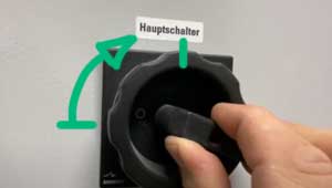 Der Hauptschalter wird mit dem Uhrzeigersinn angeschalten